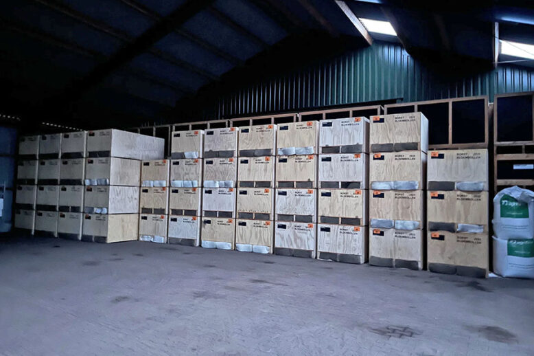 Bij een bloembollenkwekerij in Boijl staan inmiddels voor de tweede keer pelletheaters opgesteld, die worden ingezet bij het conserveren van tulpenbollen.