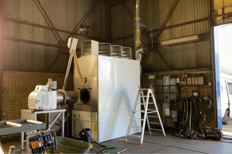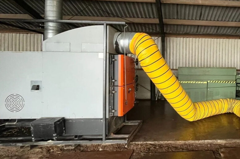 De vezels van de ‘lisdodde’ worden gedroogd met behulp van warme lucht door pelletheaters.