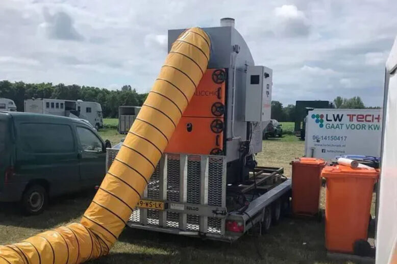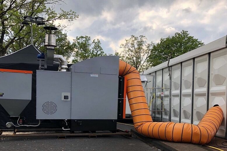 Twee pelletheaters zorgen voor een aangename temperatuur in de feesttenten tijdens de Oranjefeesten in Dalfsen.