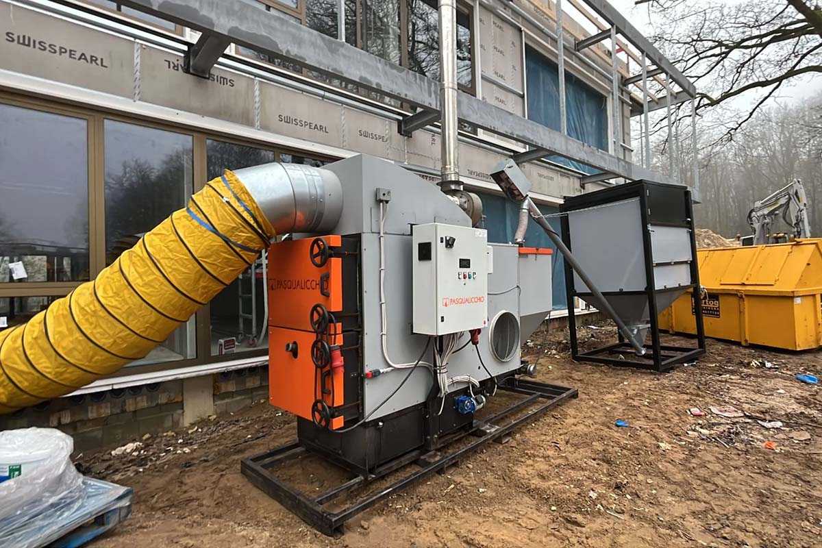Voor de renovatie van middelbare school ‘De Amersfoortse Berg’ hebben wij twee pelletheaters geïnstalleerd. Deze zullen voor een periode van vijftien weken zorgen voor efficiënte en duurzame verwarming. De verwarming levert droge lucht, wat essentieel is voor schilders en stukadoors omdat de luchtvochtigheid niet toeneemt.
